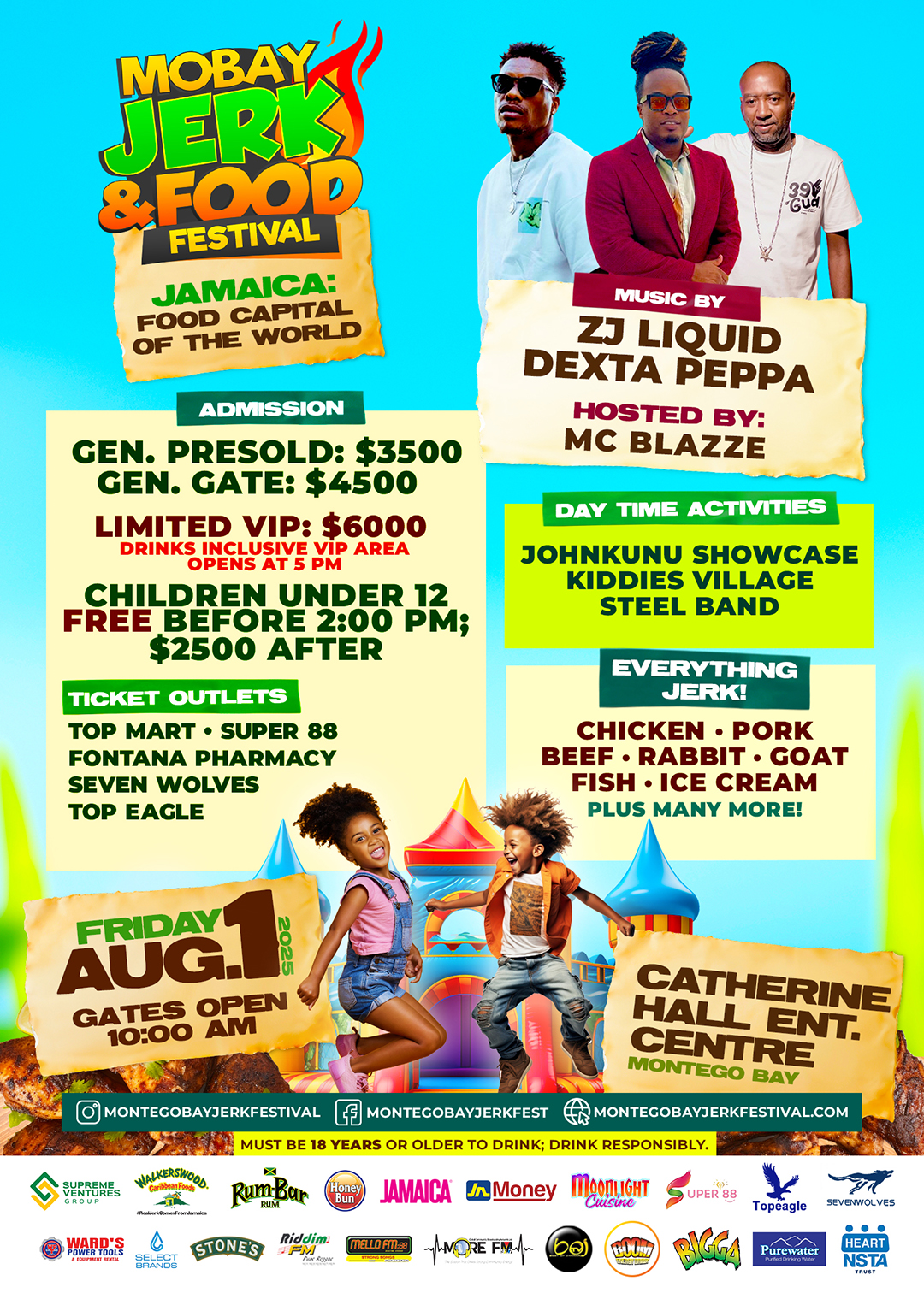 Children under 12 FREE before 2:00 PM; Tickets are J$2500 after.